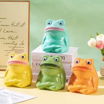 Adorable Ceramic Frog Piggy Bank – Big-Mouthed Cartoon Frog Figurine
